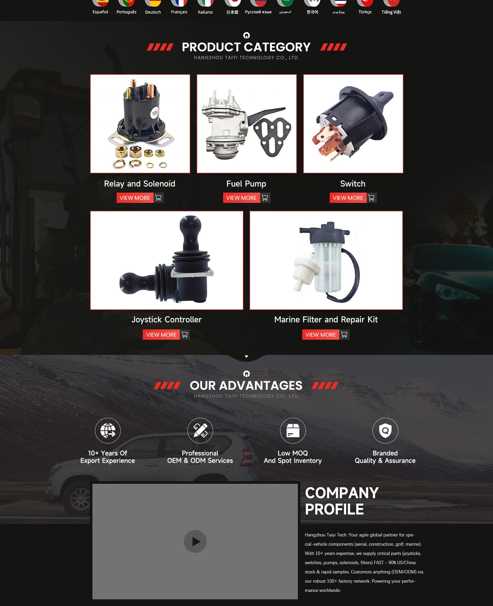 Prodotti principali: Joystick Controller, interruttore di accensione, solenoide di spegnimento del carburante, pompa del carburante meccanica, relè